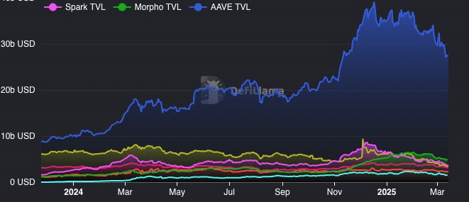 2. The lending sector is oversaturated: There are now over 500 lending protocols, up from 50 in 2023, yet the overall TVL has not grown since 2021. This creates an environment where every project is competing for the same liquidity.