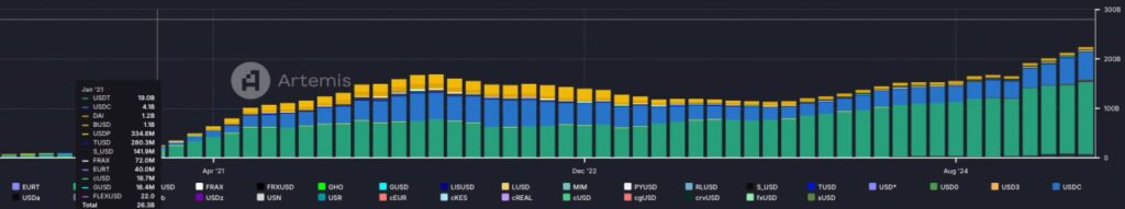 Related to stablecoins, I actually love the dashboard on Artemis.xyz which highlights the incredible traction of Stables over the last 5 years. Even as we have faced bull and bear cycles, the adoption of stablecoins has continued to grow. It’s a testament to real product market fit.